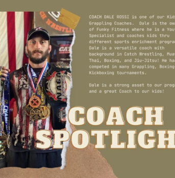 Coach Dale Rossi is one of our Kids Grappling Coaches. Dale is the owner of Funky Fitness where he is a Youth Specialist and coaches kids thru different sport enrichment programs.